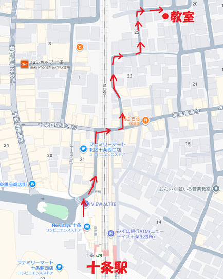 JR十条駅から教室までの道順です。